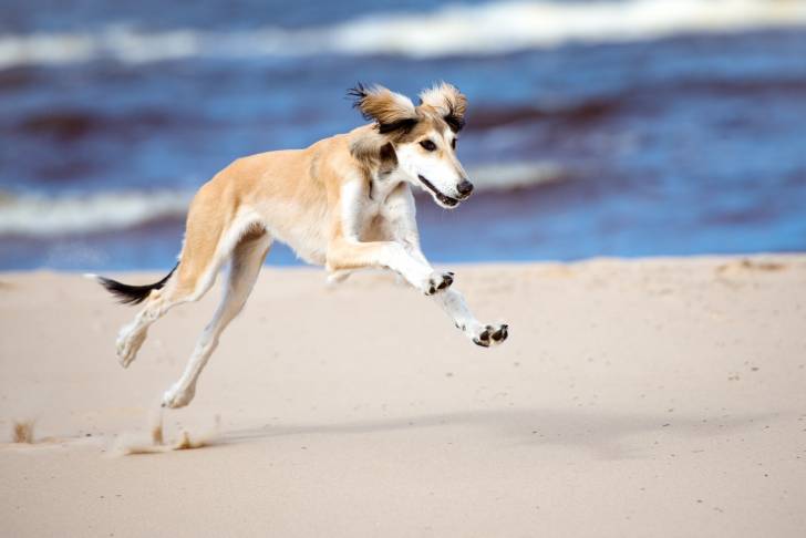 Un Lévrier Persan courant à toute allure