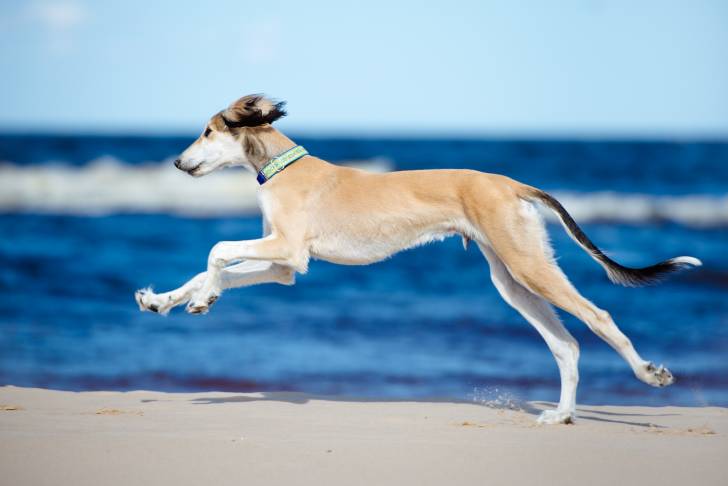 Un Lévrier Persan courant à toute allure