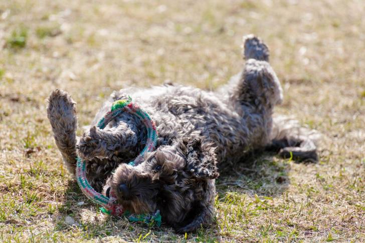 Un Schnoodle profite d'une journée à la plage