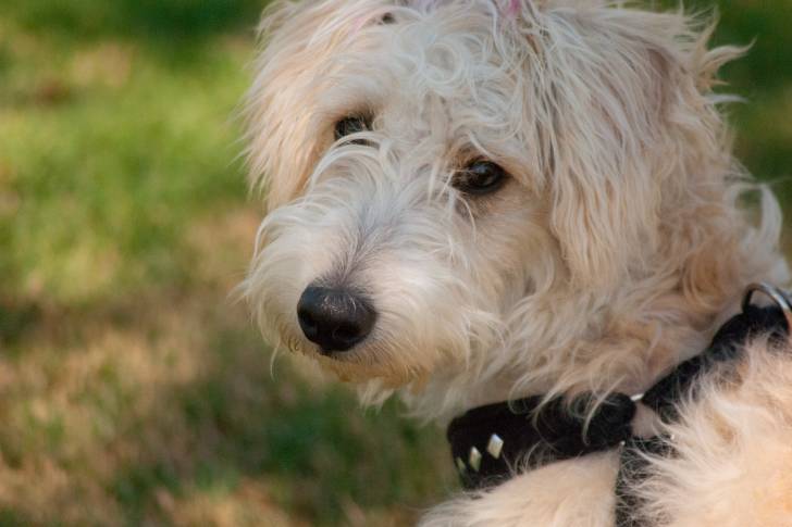 Ce très jeune Scoodle regarde timidement son maître
