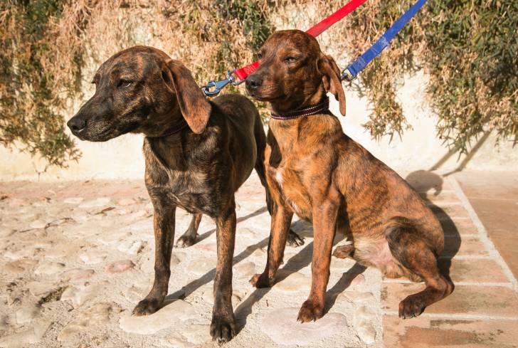 Des chiots Segugio Maremmano têtant leur maman et évoluant dans le jardin