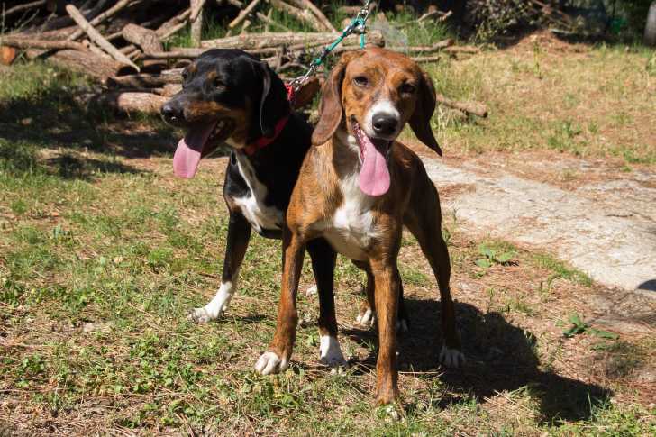 Des chiots Segugio Maremmano têtant leur maman et évoluant dans le jardin