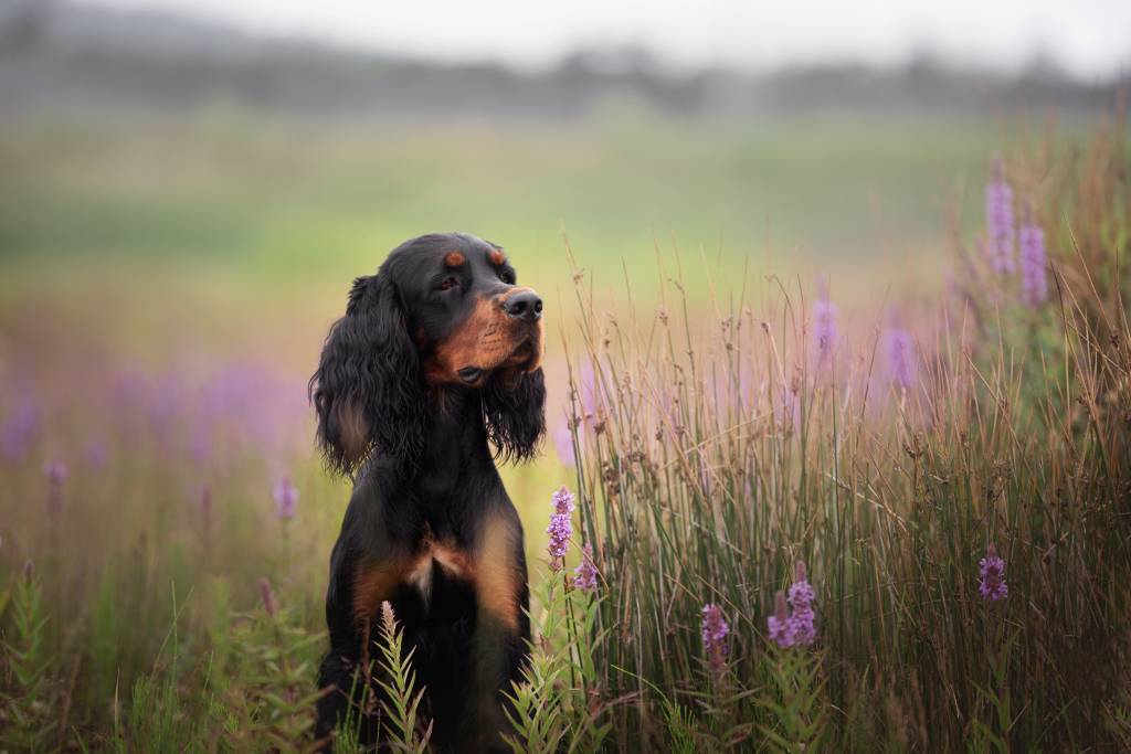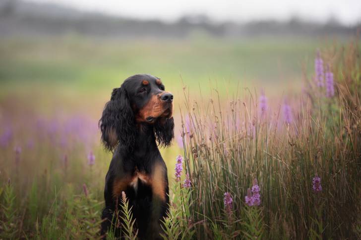 Magnifique arrêt sur un lièvre d'un Setter Gordon