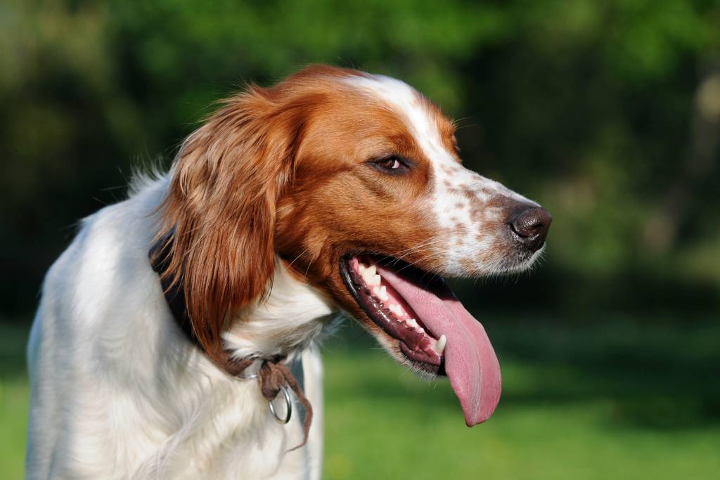Un Setter Irlandais Rouge et Blanc avec un Setter Irlandais