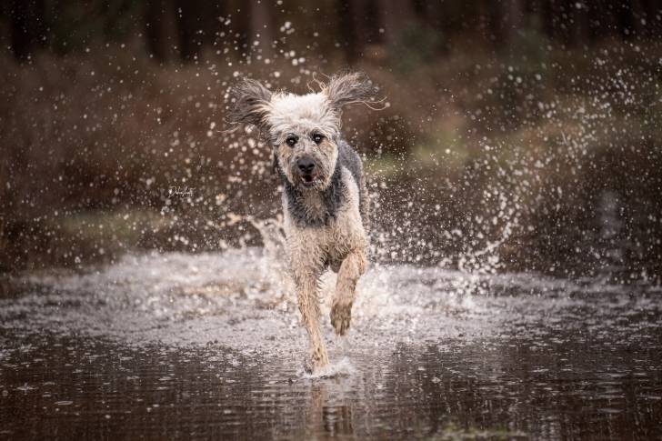 Un Shepadoodle fait sa première séance avec un éducateur canin
