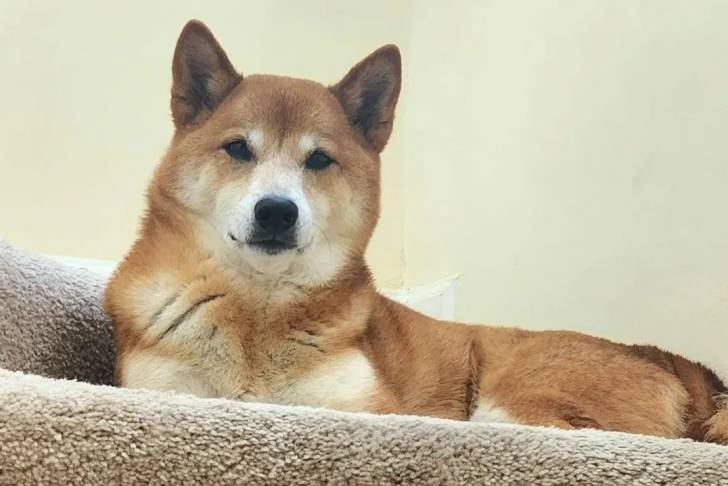 Un Shiba Inu sur une marche d'escaliers et regardant vers la caméra