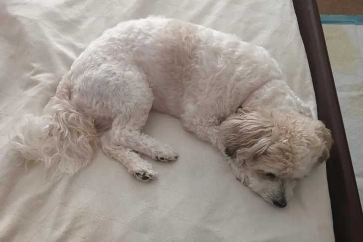 Un Shichon allongé sur un lit et semblant dormir