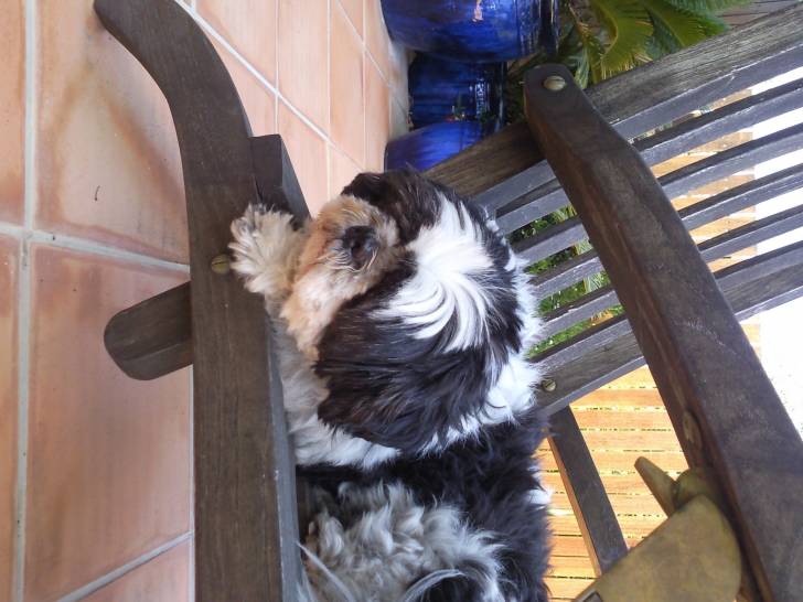 Un chiot Shih Tzu de 3 mois apprend différentes positions