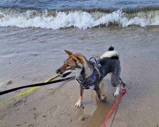 Partie de jeux entre un Hokkaido Ken, un Shiba Inu et un Shikoku