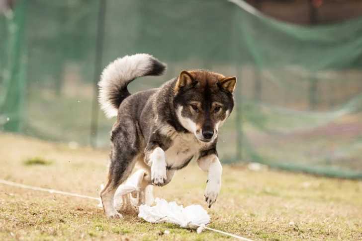 Partie de jeux entre un Hokkaido Ken, un Shiba Inu et un Shikoku
