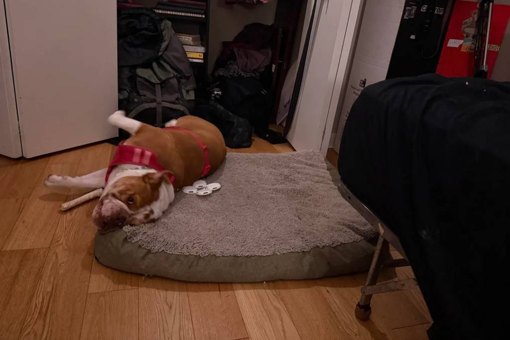 Un Shorty Bull allongé et semblant content