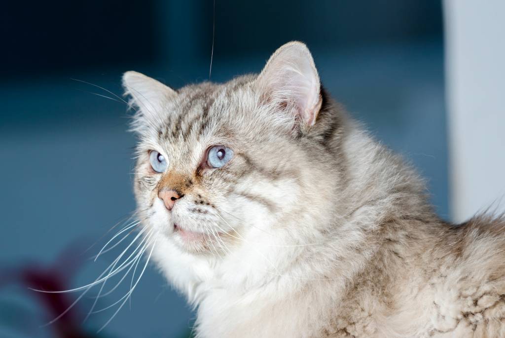 Un jeune Epagneul Tibétain câline un gros chat Sibérien