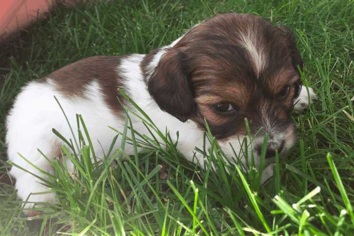 Charle, un Snorkie, aboie pour recevoir des caresses