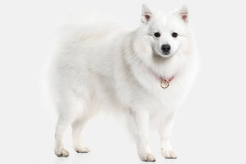 Un Spitz Japonais essaie d'attraper une balle dans l'eau