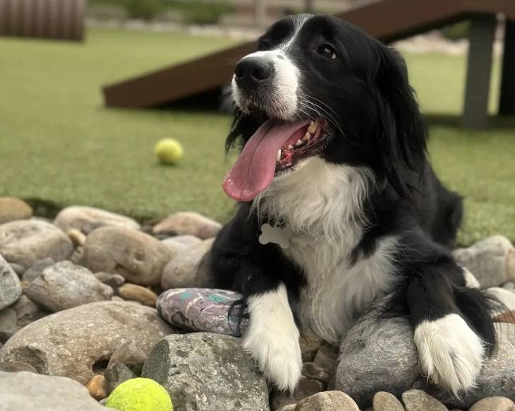 Un Springer Anglais ayantla langue pendante et portant un collier autour du cou