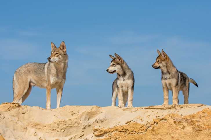 Séance d'éducation pour un chiot Tamaskan au cours d'une balade