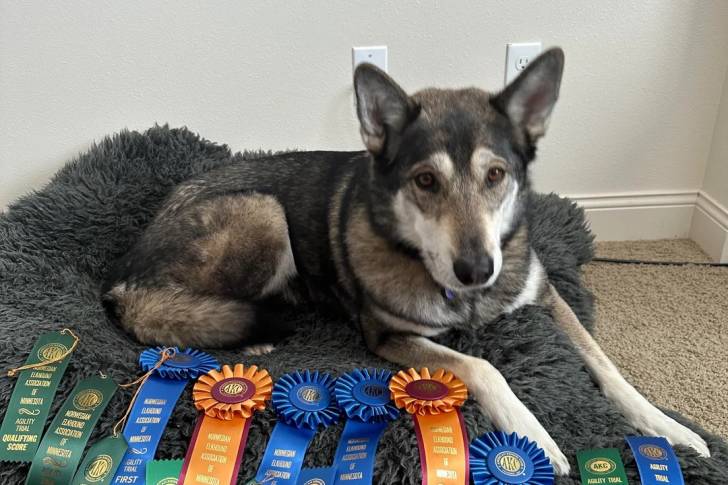 Séance d'éducation pour un chiot Tamaskan au cours d'une balade