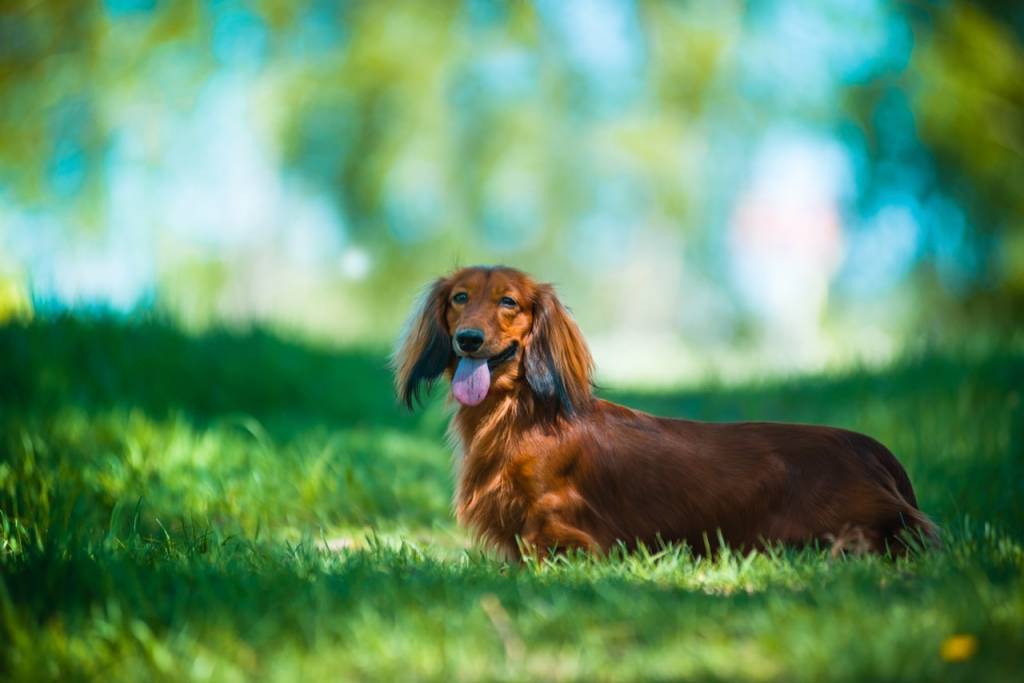 Un Teckel lors d'une balade dans un parc
