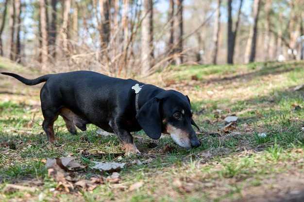Un Teckel semblant renifler le sol