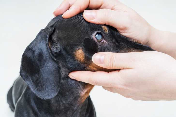 Un Teckel se faisant examiner les yeux