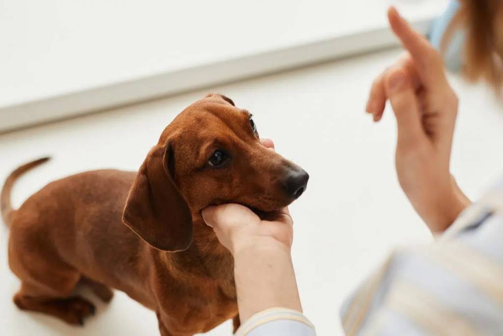 Un jeune Teckel attentif aux instructions pendant une séance d'éducation
