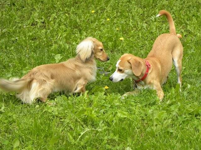 Angelo - Teckel Nain poils longs avec Hélai sa cousine
