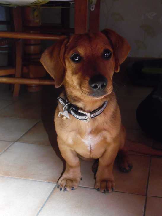 Lucky a 5 mois sur la photo, c'est un croisé teckel standard a poil lisse. il est trop mignon et attentionné à ce qu'on lui dit. je lui apprend plein de chose. depuis son arrivé a la maison je le promène sans laisse, il marche a mes pied il a totalement compris le danger des voitures et la traversé des passages piétons. il a assimilé l'ordre "trottoir' qui signifie qu'il doit marcher sur le coté ou sur le trottoir si il y en a un.