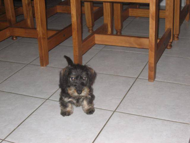 teckel nain a poil dur, Vroum la pile electrique !!!