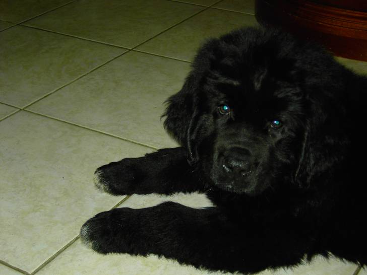 Un Terre Neuve de deux mois qui adore son maître