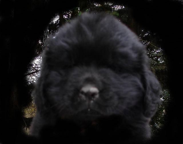 Un Terre Neuve de deux mois qui adore son maître