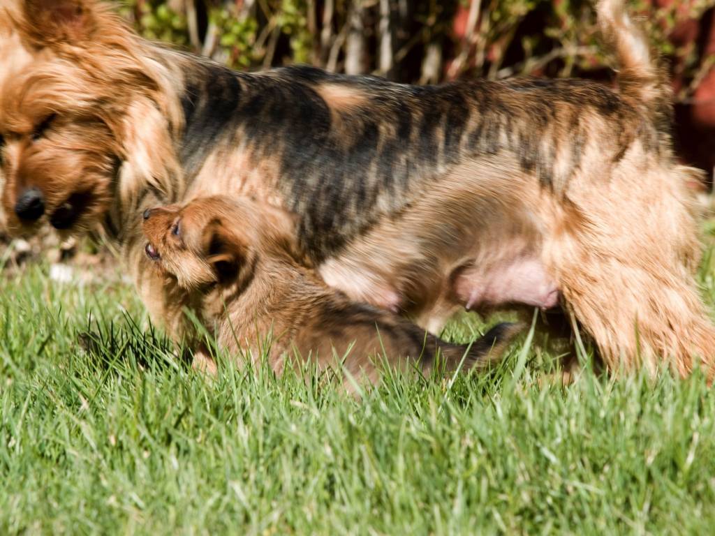 Des Terriers Australiens s'entraînent à chasser des serpents... en peluche