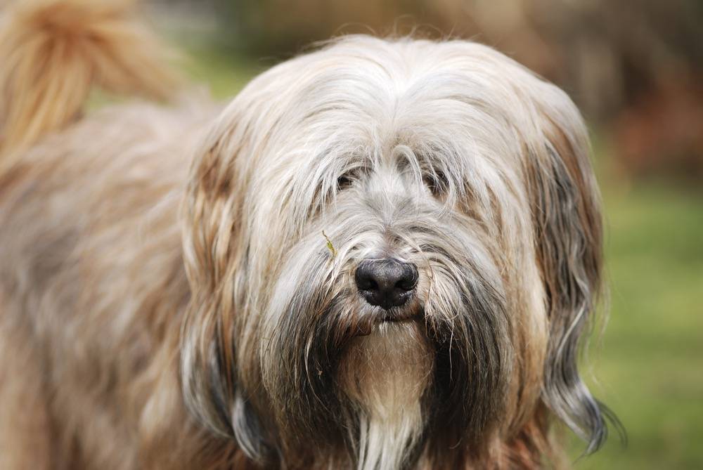 Deux jeunes Terriers Tibétains s'amusent dans un carton