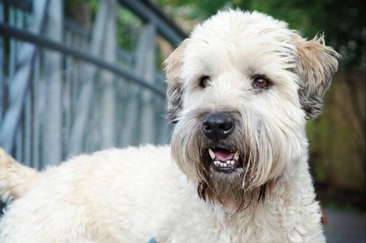 Vue proche d'un Terrier Irlandais à Poil Doux blanc
