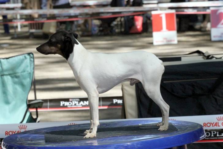 Un Terrier Japonais et Un Pinscher Nain se disputent un jouet