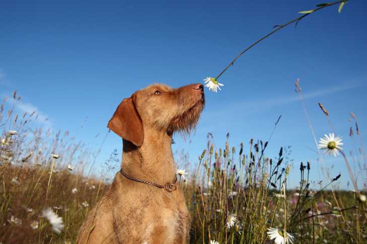 Un Braque Hongrois à poil dur à la chasse au faisan