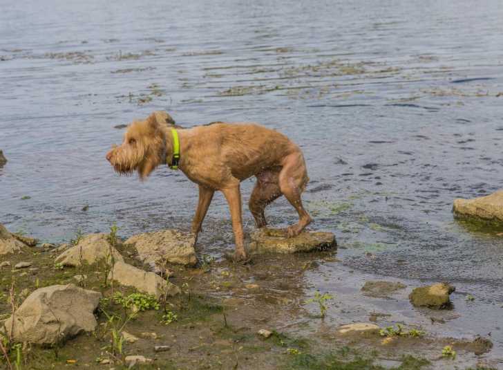 Un Braque Hongrois à poil dur à la chasse au faisan