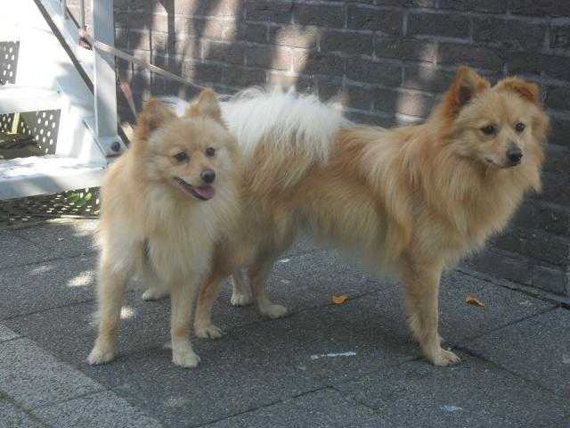 Un Volpino essaie d'attraper une saucisse posée sur la table