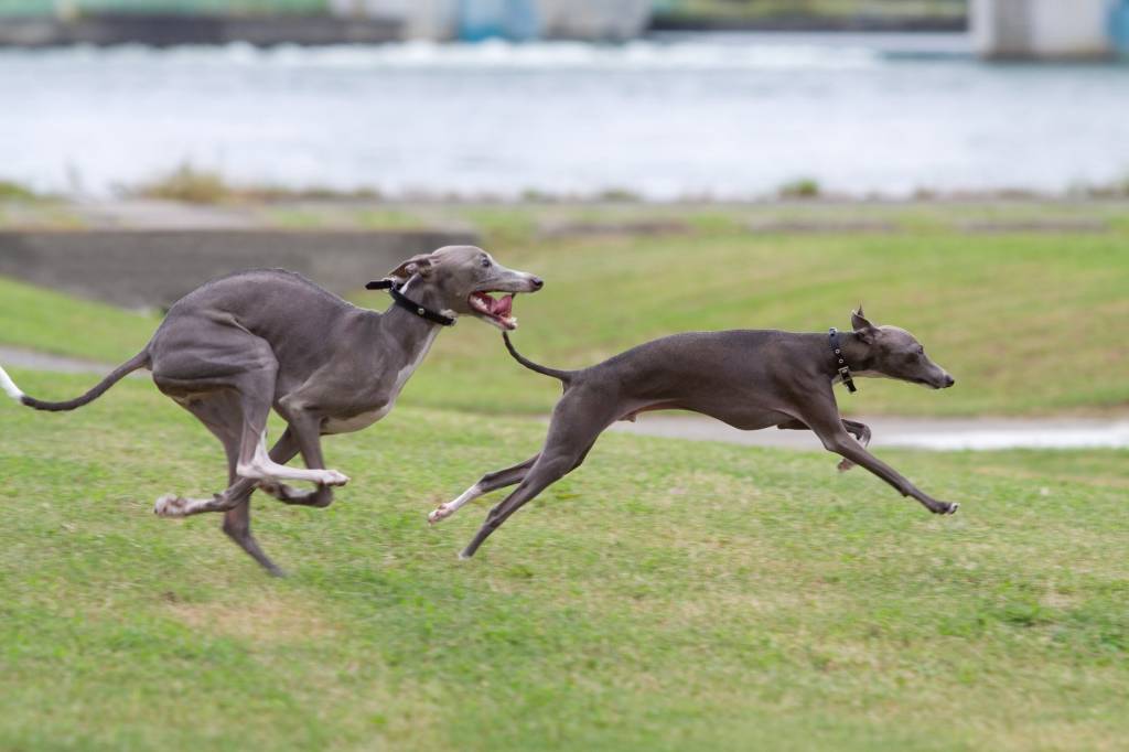 Une course de vitesse entre un Lévrier Whippet et un Saluki
