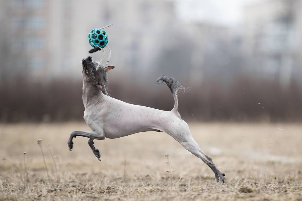 Un Xolo et un Bull Terrier attendent sagement leur friandise