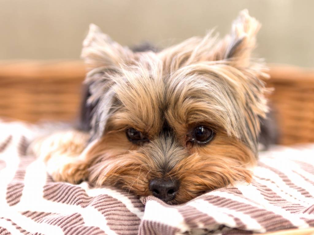 Un bébé Yorkshire s'amuse comme un fou avec une balle