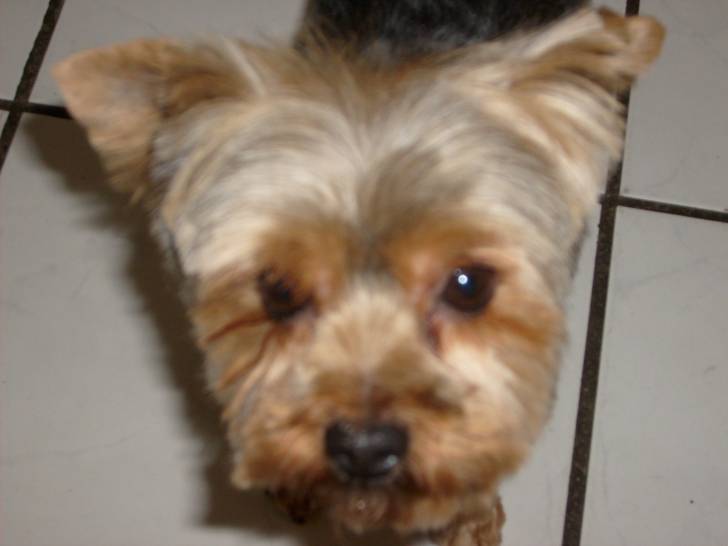 Un bébé Yorkshire s'amuse comme un fou avec une balle