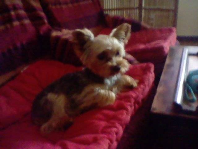 Un bébé Yorkshire s'amuse comme un fou avec une balle