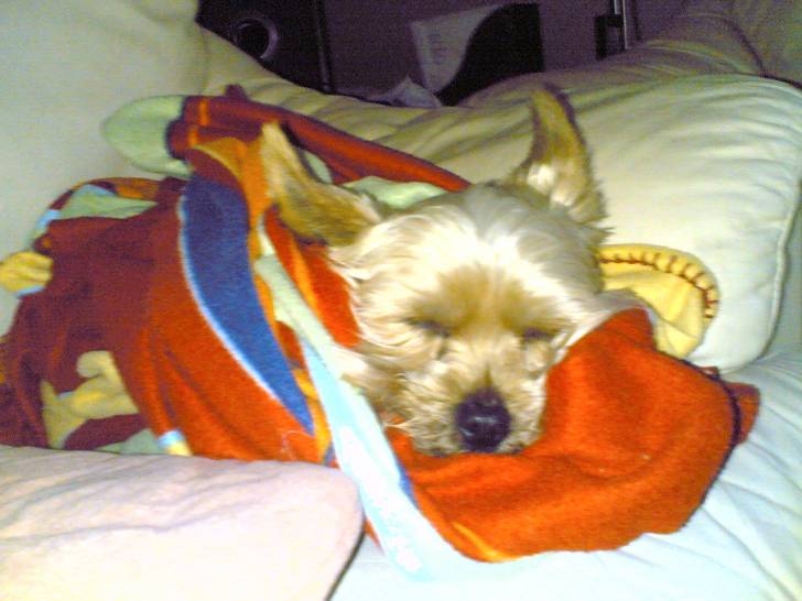 Un bébé Yorkshire s'amuse comme un fou avec une balle