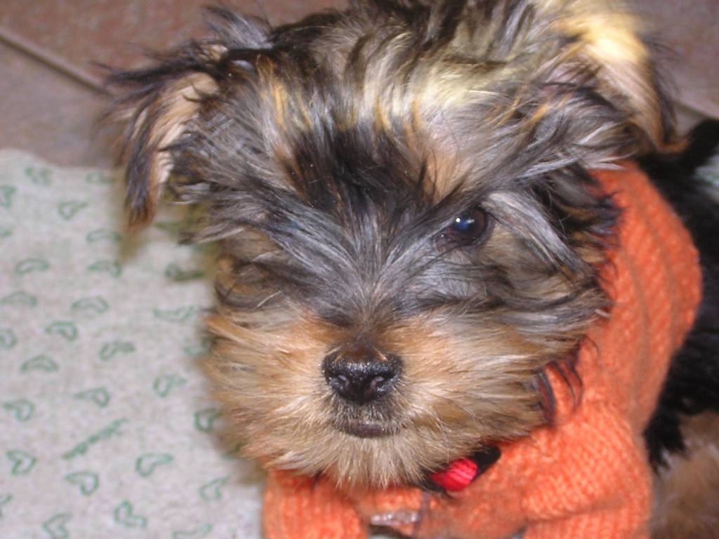 Un bébé Yorkshire s'amuse comme un fou avec une balle