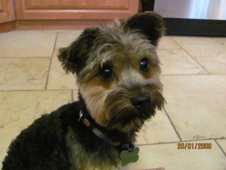 Un bébé Yorkshire s'amuse comme un fou avec une balle