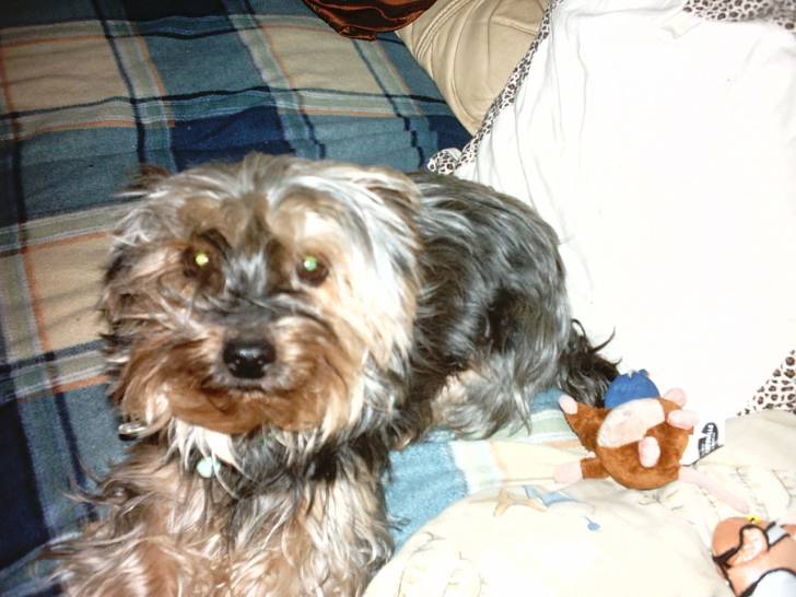 Un bébé Yorkshire s'amuse comme un fou avec une balle