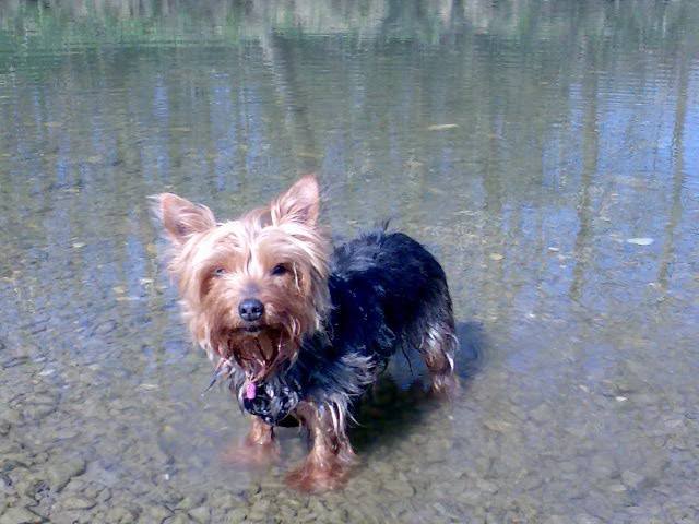 Un bébé Yorkshire s'amuse comme un fou avec une balle