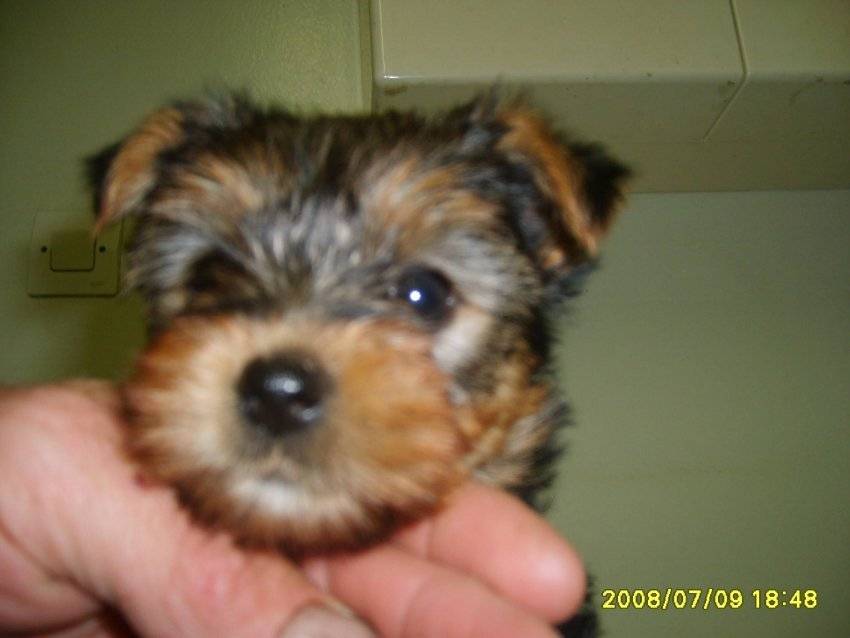 Un bébé Yorkshire s'amuse comme un fou avec une balle
