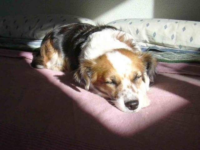 Elle c' est Reinette, une petite chienne des rues d' Andalousie qui se laissait dépérir dans un refuge.. Aujourd'hui, elle a oublié ce passé et vit, heureuse, avec son copain Pichi