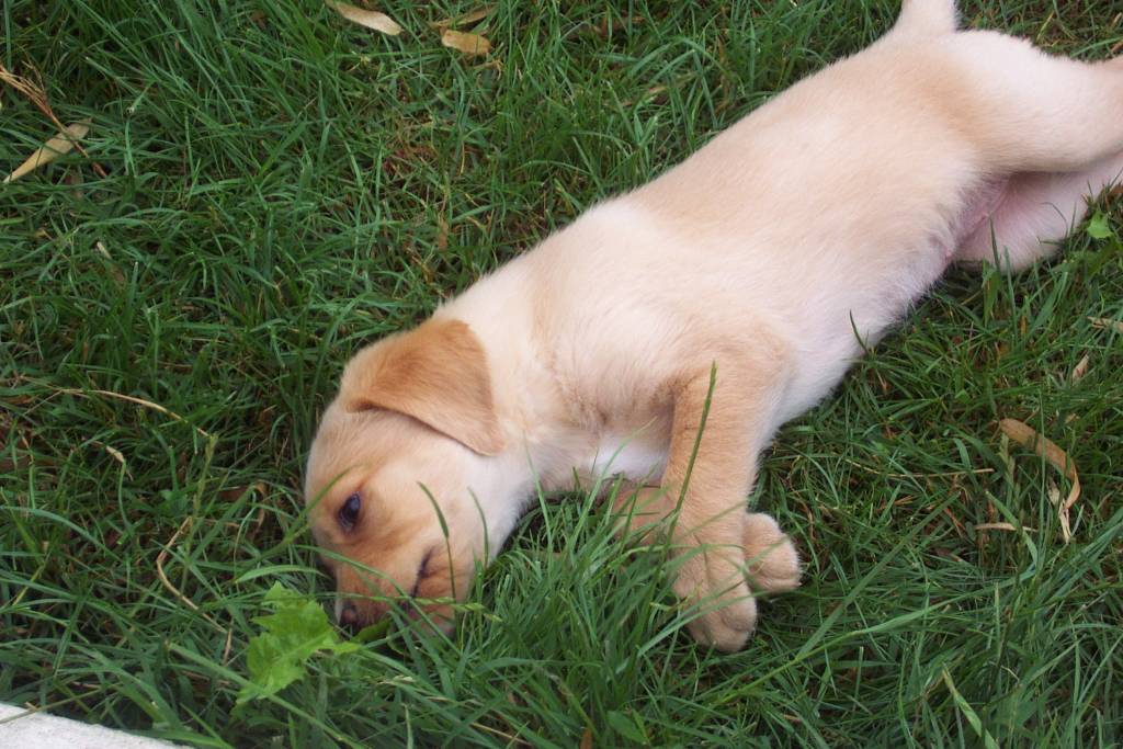 Voici Sasha à l'âge de trois mois. C'est une croisée labrador x am staff (même si cette seconde race dont elle est issue ne se remarque pas forcément durant ses photos de jeunesse, c'est nettement plus évident aujourd'hui, comme vous le percevrez aisément lorsque j'aurai publié un cliché d'elle récent). Elle est âgée actuellement de 8 ans déjà (hélas... je redoute son décès qui, du fait de sa taille, me semble terriblement proche...).